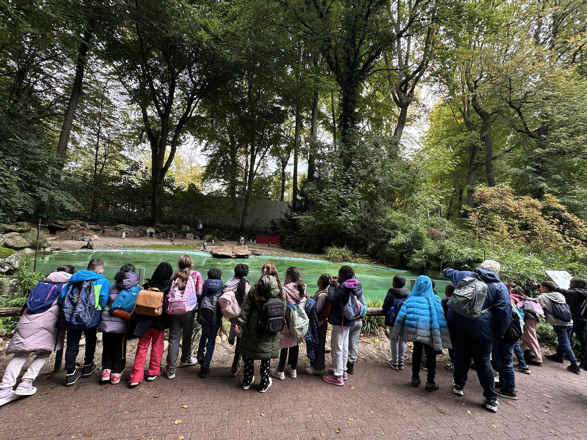 In diesem Schuljahr haben die Klassen E2-E5 im Oktober die Zooschule besucht und bei ihrem Ausflug unter anderem gelernt, dass die Flügel-Spannweite des Andenkondor größer ist als die ausgestreckten Arme zweiter Kinder. Sie erfuhren auch, wo die Tiere in freier Natur leben und wie man Männchen und Weibchen bei eingen Tieren unterscheiden kann.
